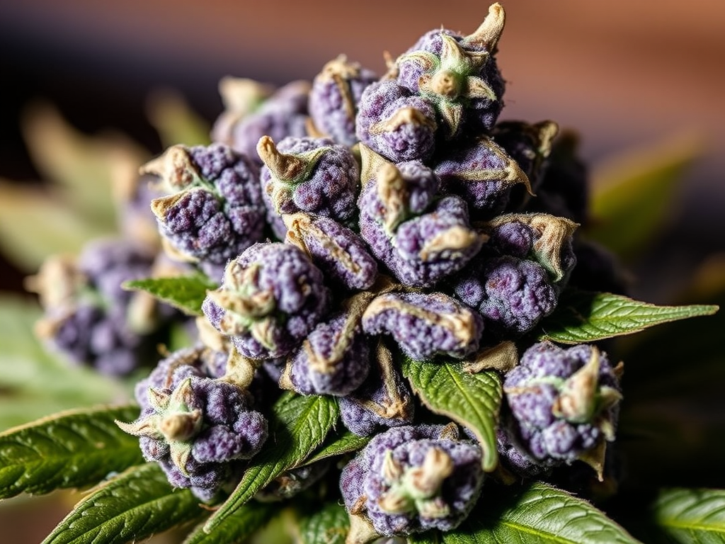 A modern dessert-gas hybrid known for its blueberry gelato sweetness riding over diesel/skunk funk, with a calm but confident headspace.